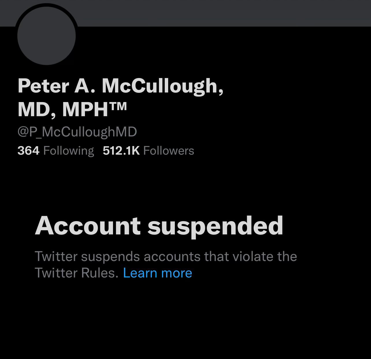 Dr. Peter McCullough, Strategic Advisory Council of The Unity Project was de-platformed this week off of twitter.